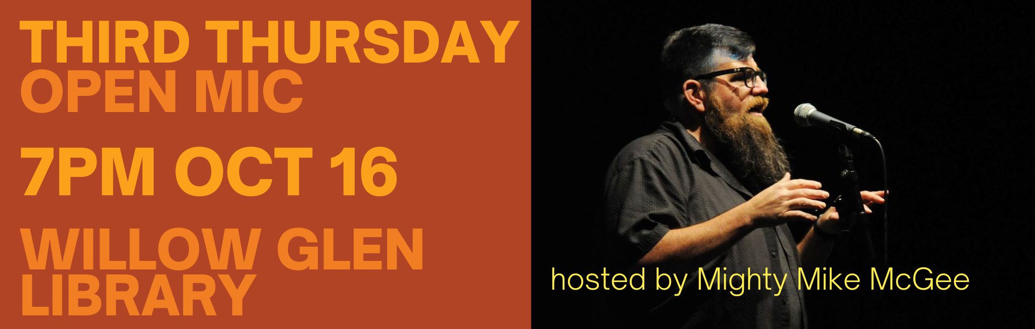 Third Thursday is a monthly poetry program in partnership with Poetry Center San José and hosted by Mighty Mike McGee (most of the time!)