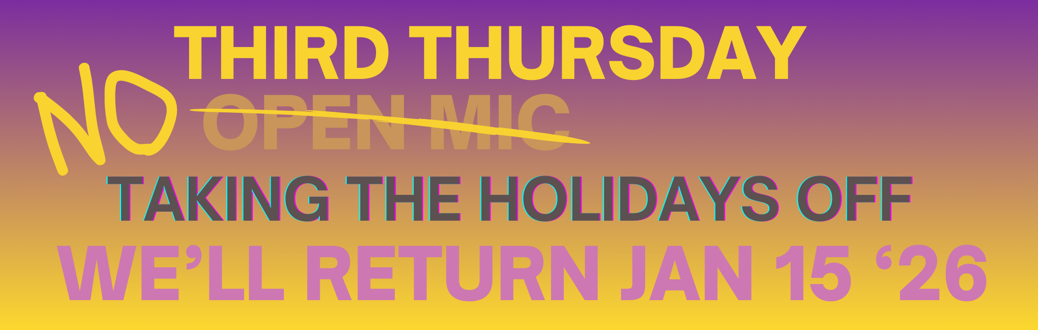 Due to a number of conflicts, we have decided to skip Third Thursday in December, however, we will be back January 15, 2026. See you next year!